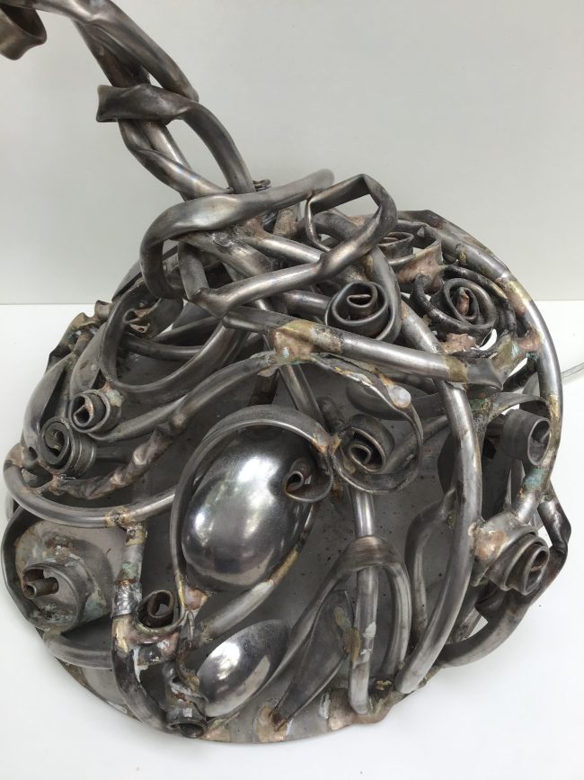Dans ma quête artistique, je fais dialoguer lumière et métal abandonné.